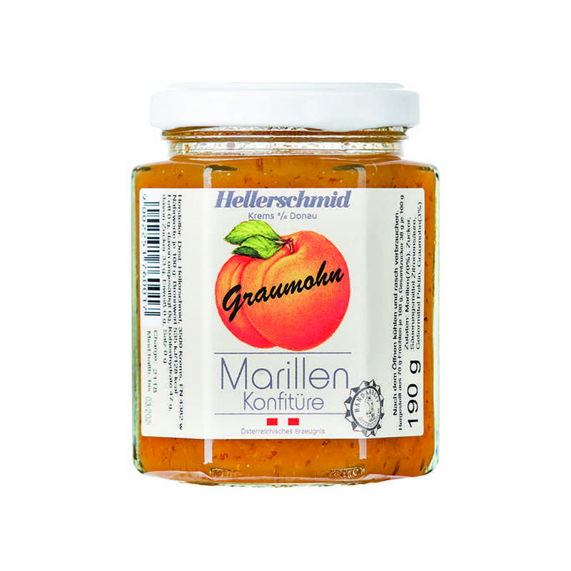 Unsere Marillenmarmelade verfeinert mit bestem Waldviertler Graumohn – eine ausgezeichnete Kombination.